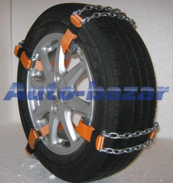 Не менее интересный вариант: резиновые сетки, отличием от традиционных цепей, является материал. Казалось бы, резина менее надежна, но как, ни странно гораздо лучше справляется с проблемой пробуксовки шин на скользком обледенелом покрытии.